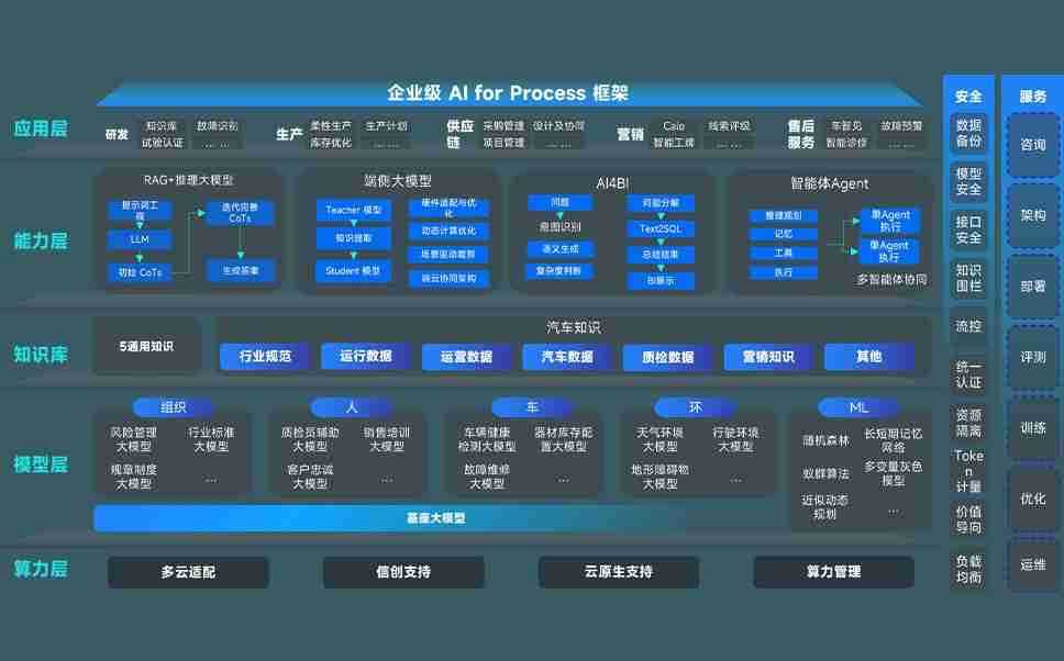 端到端的一站式AI工作空间深度融合了从企业战略规划到日常经营的全流程业务板块,,定向解决车企内部领域多、、、、部门多、、链条长、、、场景碎片化等难题,,,支持车企快速构建以AI为核心的生产力写作体系,,实现任务执行与AI能力的无缝集成与交互